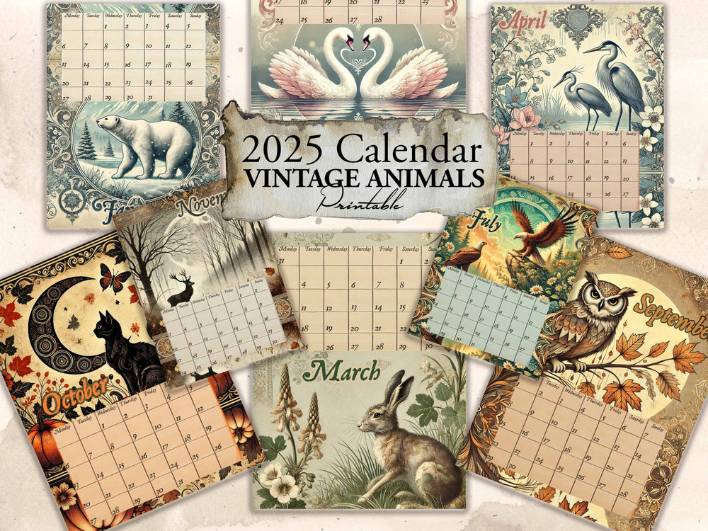 2025 Vintage Animals Digital Calendar