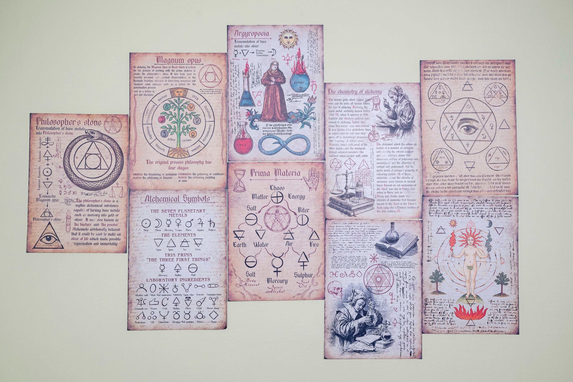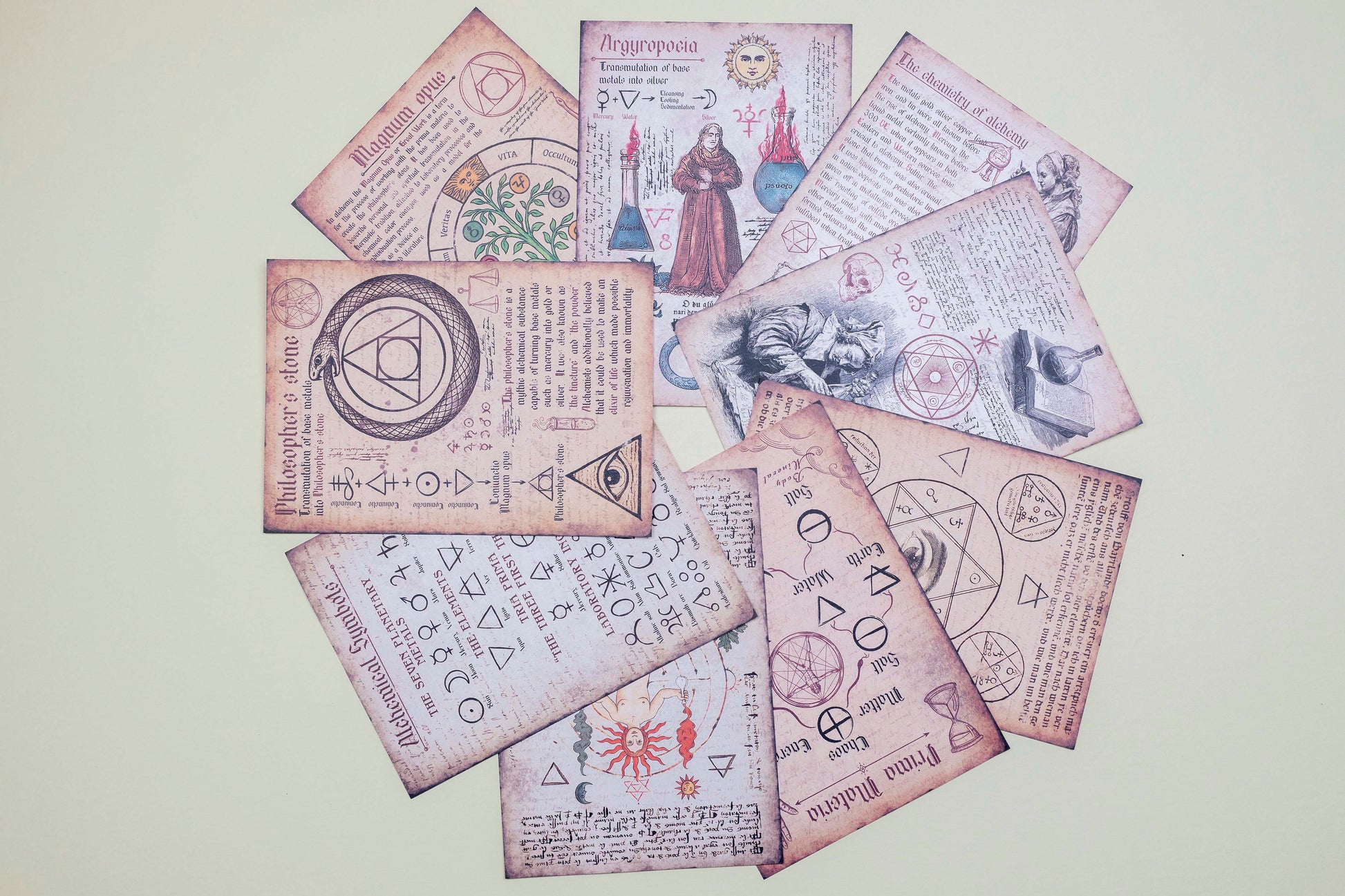 Discover 10 beautifully designed vintage pages exploring alchemical manuscripts full of mysterious runes, symbols, formulae and concoctions.
