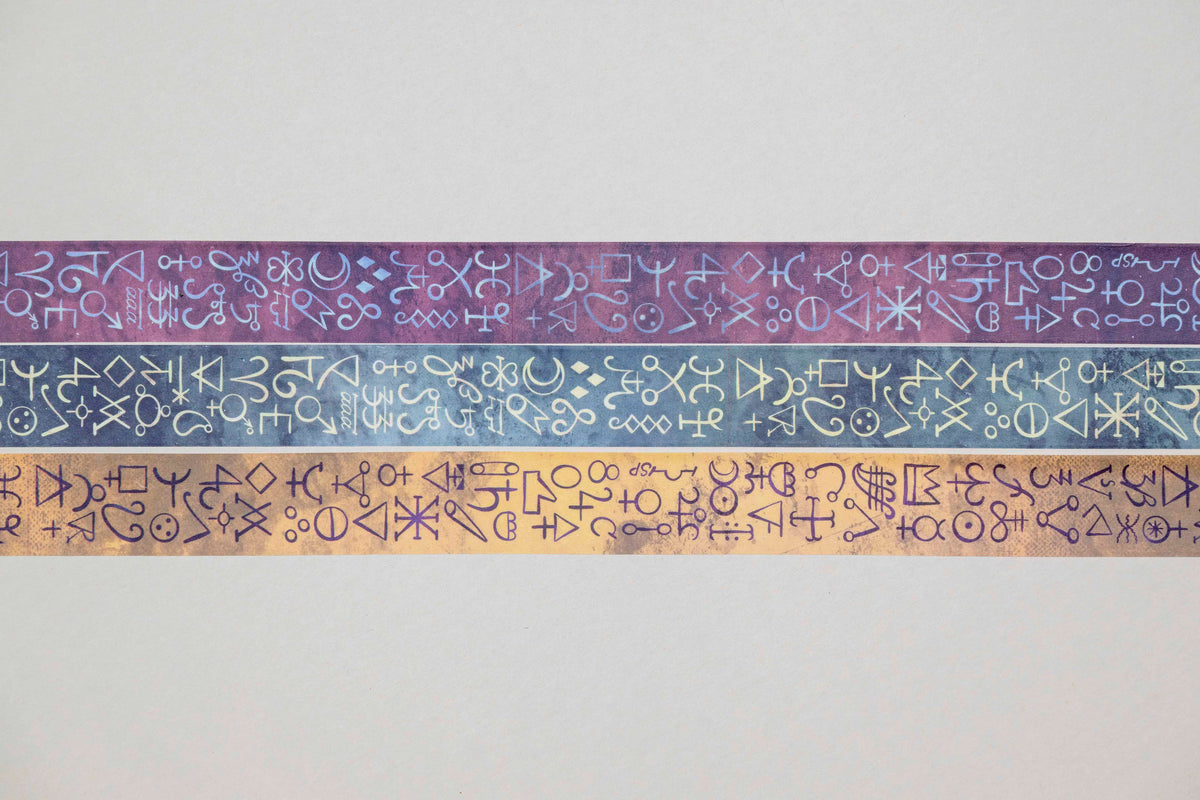 This tape features a repeating pattern of traditional alchemy symbols. Each mark is a piece of hidden knowledge, bridging the worlds of science, magic, and metaphysics.