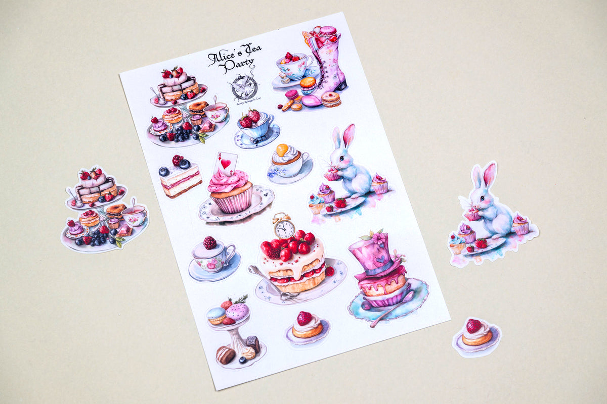 Bring the adorable whimsy of Alice in Wonderland to your creative projects with the Alice's Tea Party Sticker Sheet, an exclusive design by CoraCreaCrafts. These high-quality stickers are printed on A5 durable vinyl matte paper, featuring adorable Tea Party-themed illustrations that capture the quirky and magical charm of Wonderland.