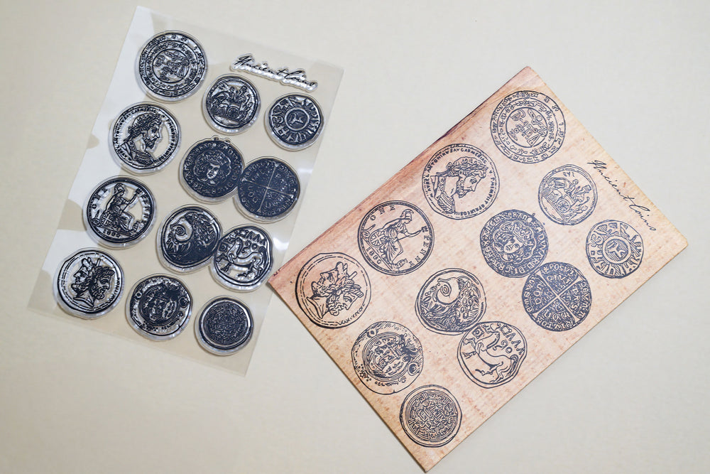 A beautiful clear stamp sheet by CoraCreaCrafts. It features various real ancient coins from across the world. This stamp sheet is 11 x 16cm and includes a total of 10 stamps. It comes beautifully packaged in a themed envelope which can be reused in your crafts.