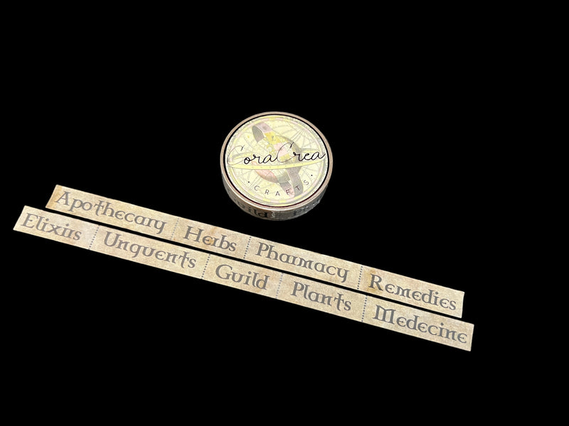 A unique vintage style washi tape designed by the artist CoraCreaCrafts. It features vintage-style text on a distressed background.