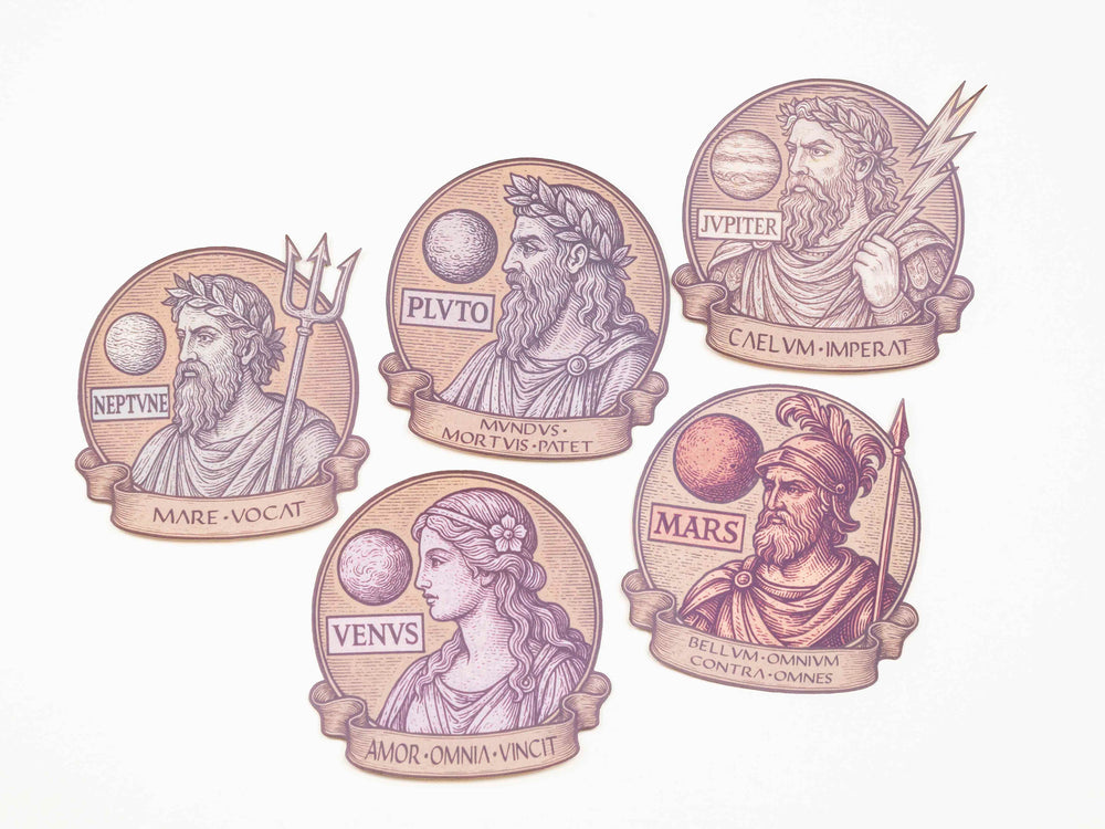 Step into the cosmos with our Astro-Mythological Sticker Set, a celestial collection of five high-quality, durable stickers inspired by the ancient myths and magic woven into the planets above.