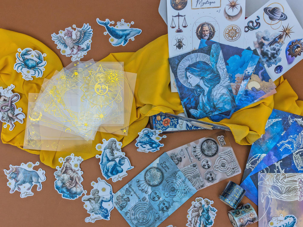 A little bit of magic, a little bit of unknown. I've always been fascinated by what lays beyond and out of our reach. This month’s Vintage Craft Box looks to the stars with a theme both magical and mysterious. Inspired by dreamy astronomy it captures the wonder of endless skies. Inside, you’ll find golden details, constellations, moons, and a lot of ethereal designs that feel both vintage and otherworldly. Each piece invites you to imagine what lies past the horizon of our world.