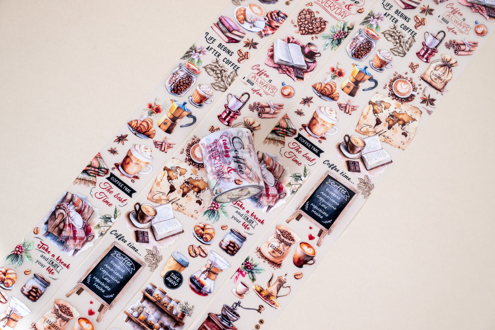 Brew up some creativity with this cozy Coffee Lover PET tape by CoraCreaCrafts. Designed for all the caffeine enthusiasts out there, this tape features a warm and whimsical collection of coffee-themed illustrations, from mugs and beans to cozy café moments.