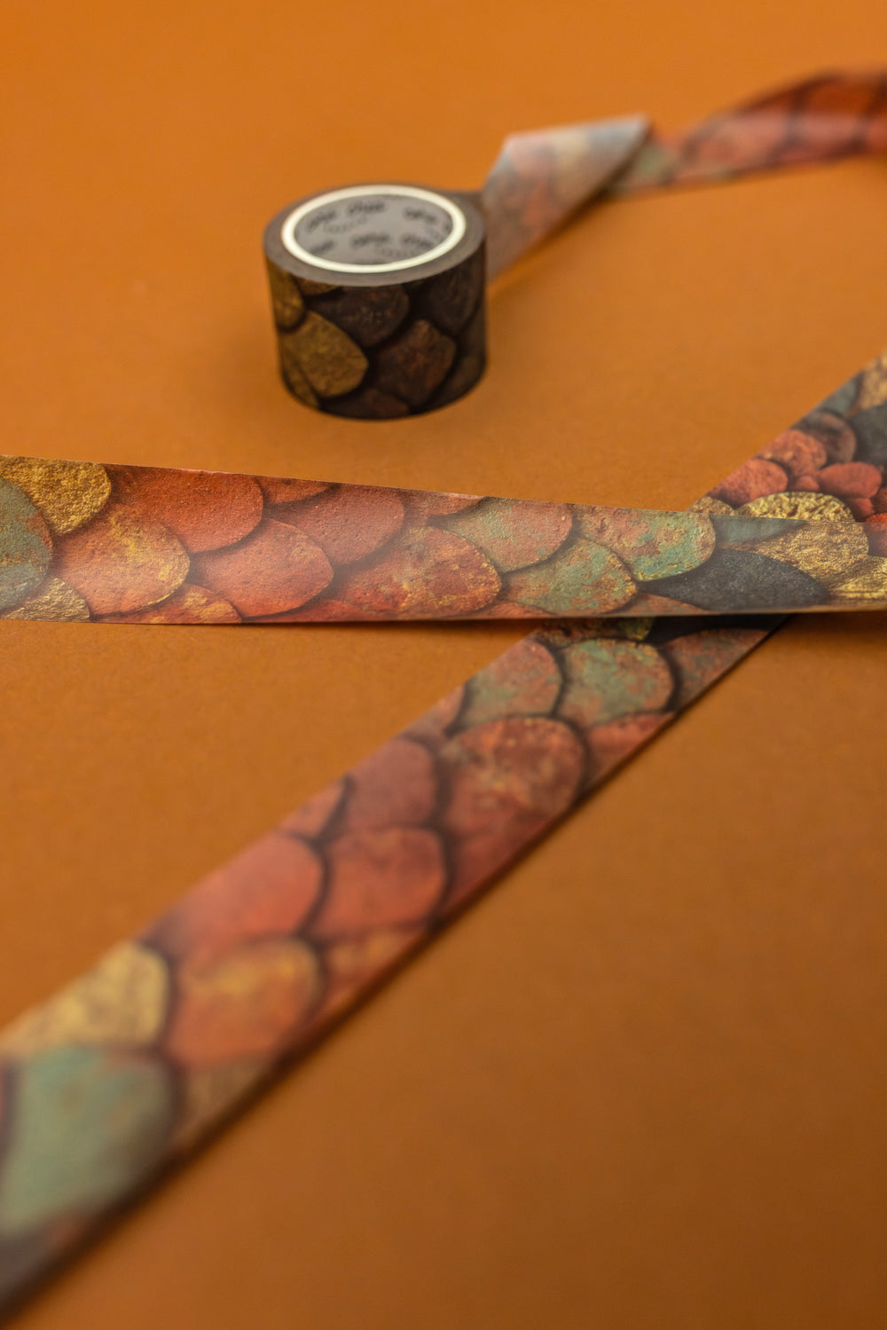 Rich colors and an intricate scale pattern gives your pages a grounded, medieval feel. Perfect for journaling, scrapbooking, cardmaking, and creative decoration, this dragon-inspired washi tape adds quiet power and depth to any project.