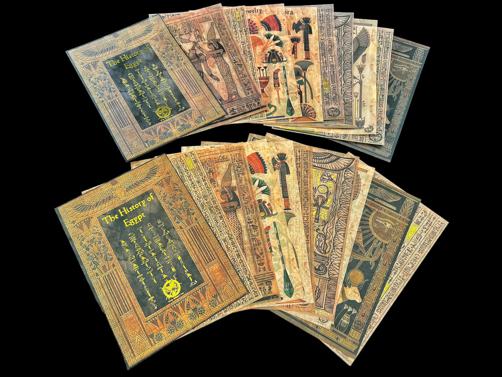 These beautiful illustrations are a Storm Sparrow's Inn design created exclusively for CoraCreaCrafts. They feature some unique design, architectural, texture, hieroglyphic, and religious elements from Ancient Egypt.