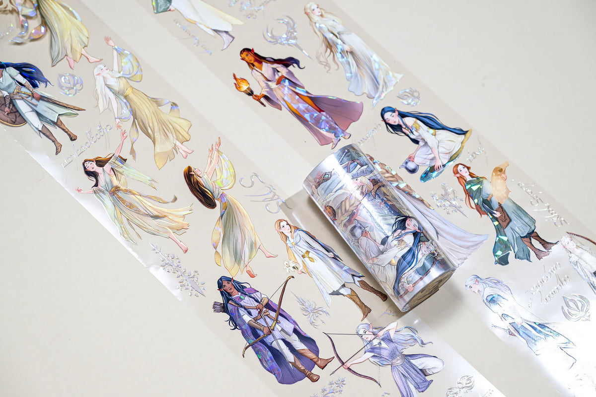 Bring the magic of epic fantasy to your creations with this stunning transparent PET tape designed by CoraCreaCrafts. Featuring an enchanting collection of elven figures inspired by legendary tales, this tape is filled with intricate details and otherworldly charm.