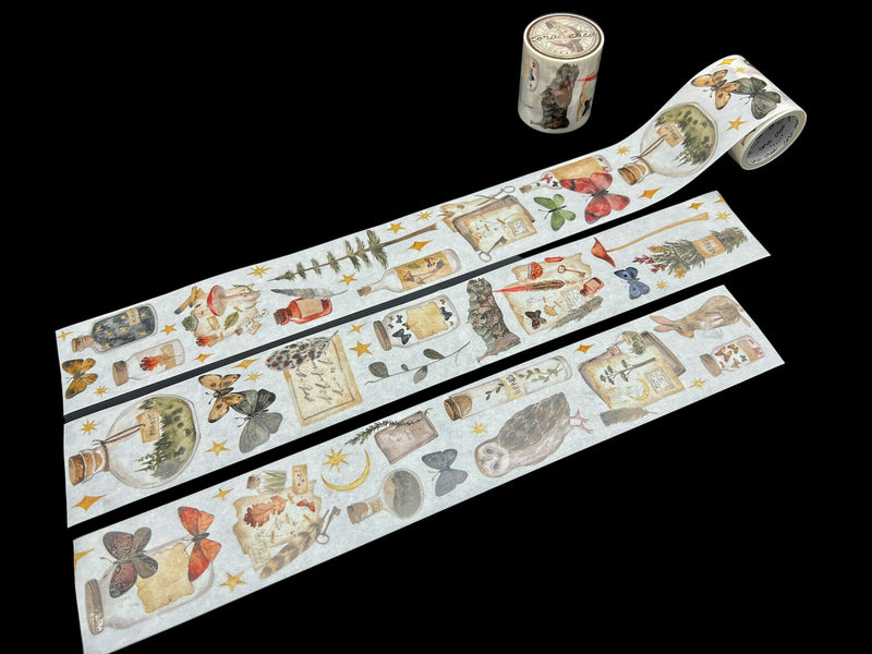 A unique washi tape by CoraCreaCrafts. This washi tape features enchanting and magical elements of nature and the forest. The designs are covered with a shiny layer to make them stand out.