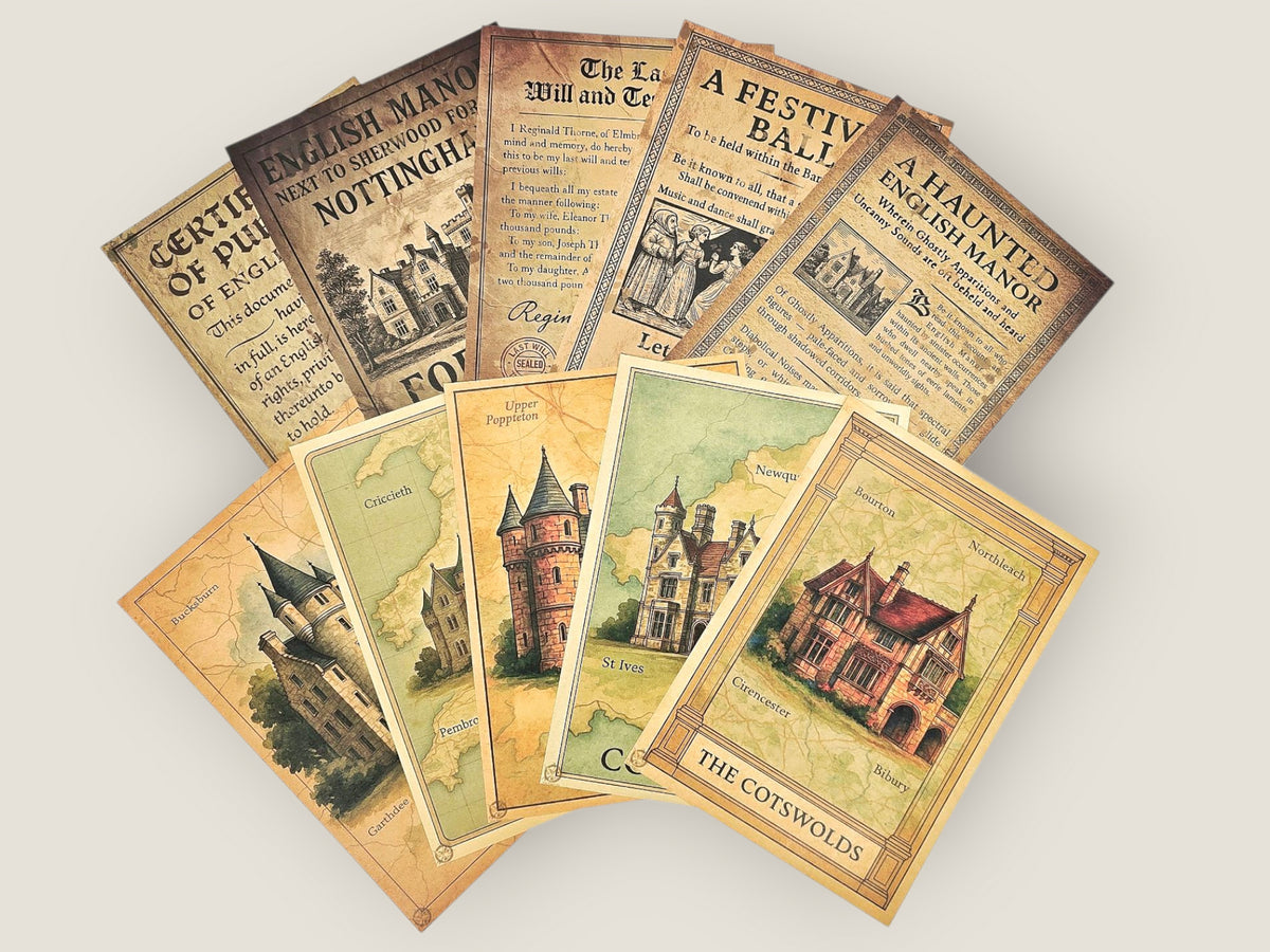 Discover 10 beautifully designed vintage pages exploring the manors of English noblemen. Perfect for creating stunning backdrops in your journals or scrapbooks. Step back in time through the elegance of architectural history.