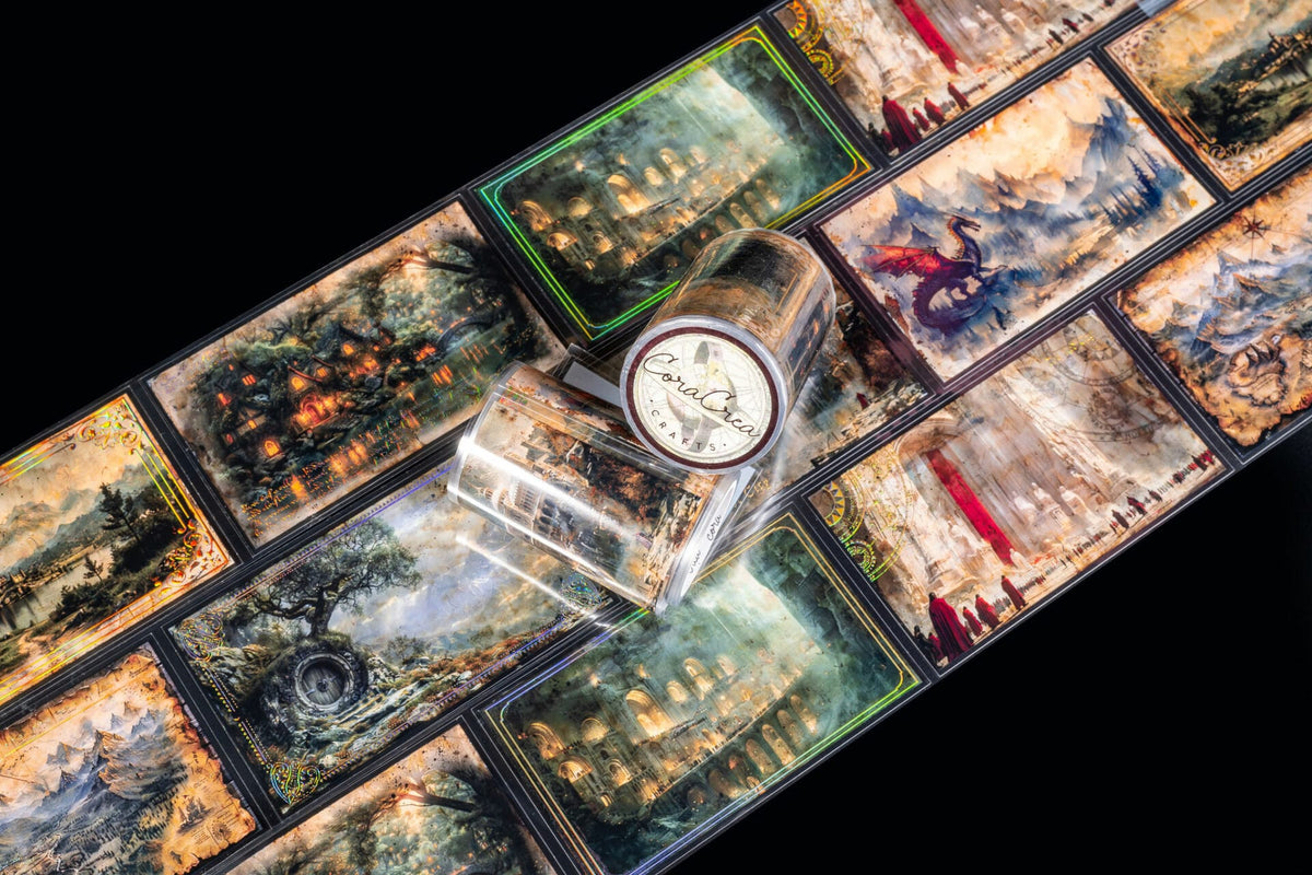 Escape to realms of dragons, magic, and epic adventures with this Fantasy Landscape transparent tape by CoraCreaCrafts. Featuring a stunning collection of otherworldly landscapes inspired by legendary fantasy worlds, this tape brings a touch of enchantment and wonder to your creative projects.