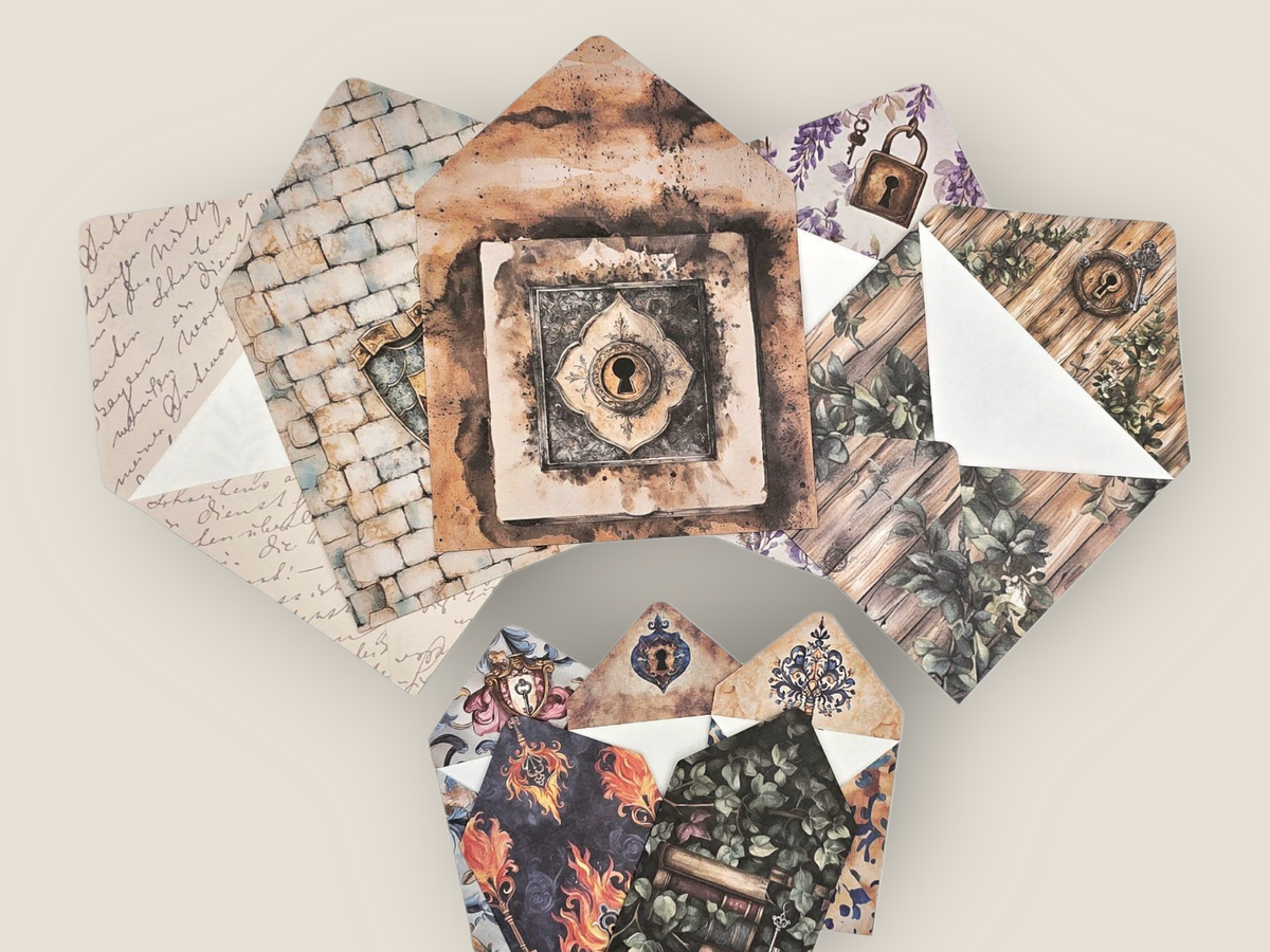 Each set includes five small envelopes featuring enchanting vintage designs, ideal for thoughtful gifts, layered journaling, or special surprises.