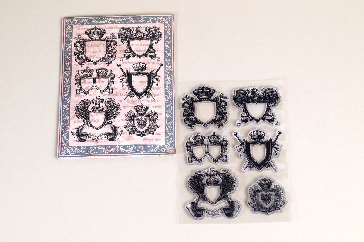 A high-quality clear stamp featuring intricate medieval crest designs, perfect for scrapbooking, card-making, and more.
