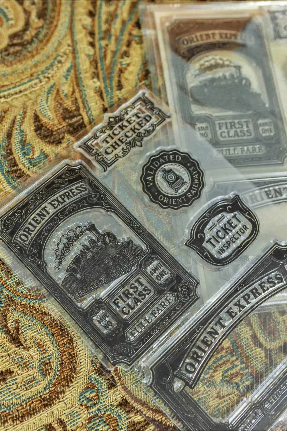 Inspired by the romance and quiet glamour of Europe’s most storied rail journeys, the Orient Express Vintage Clear Stamp Set captures the artistry of handwritten letters, passport stamps, and embossed luggage labels carried across continents.