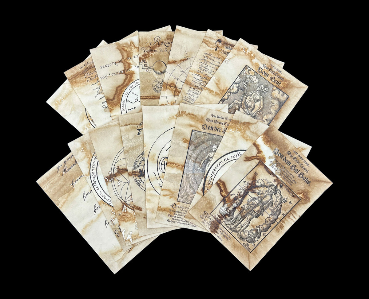This set of beautiful vintage style paper features 15 double sided pages with illustrations from an ancient manuscript treating of magic and alchemy.