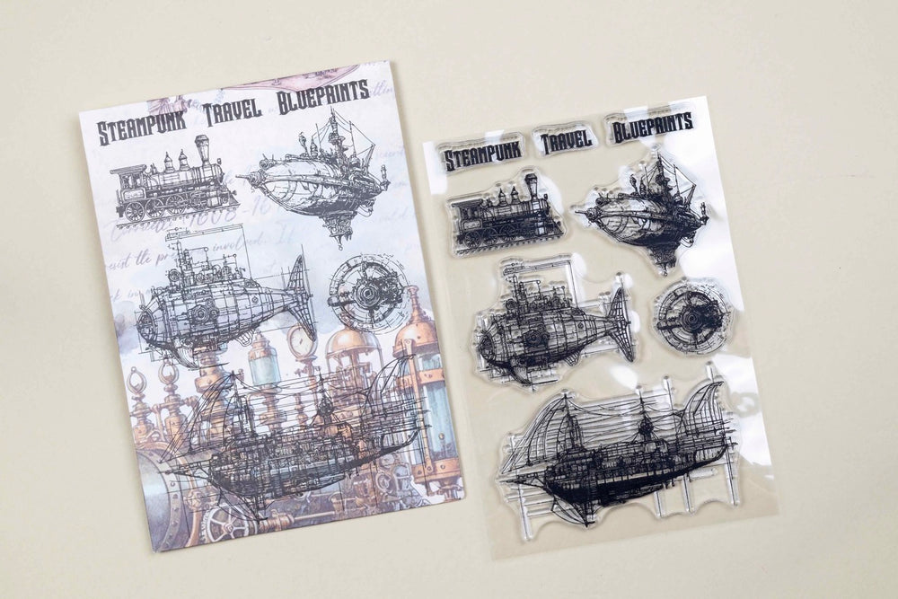 Add a touch of steampunk style to your crafting projects with this Steampunk Travel Blueprints Clear Stamp. Create intricate and detailed designs effortlessly with this high-quality stamp, perfect for adding a unique and vintage touch to your travel-themed projects. Get creative and make your projects stand out with this versatile stamp.