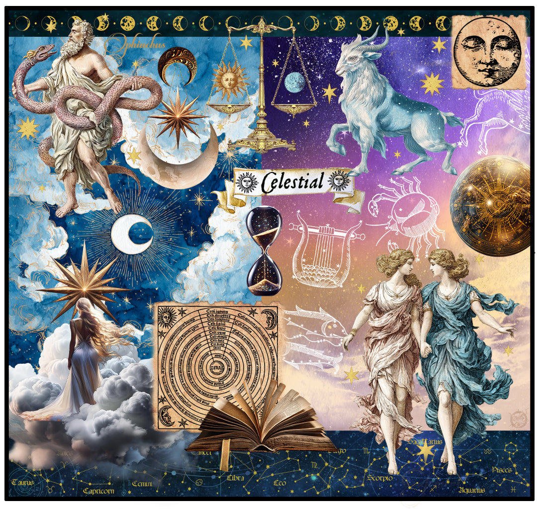 Upgrade your box with the Constellations Map, Astronomy Book Postcards & Astro Mythology Stickers- use code CELEST40